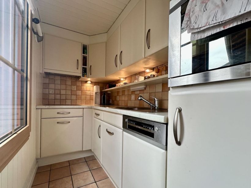D’une surface d’environ 70 m² habitables (env. 120 m² utiles), elle offre une distribution harmonieuse avec 3,5 pièces, comprenant un bel espace séjour salle à manger, cuisine séparée, deux chambres, un joli balcon, une salle de douche, un WC séparé, ainsi que de beaux espaces annexes, notamment une cave à vin et un local polyvalent idéal pour buanderie et rangements.